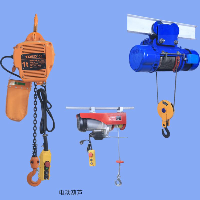 現在比較常見的電動葫蘆型號有環鏈電動葫蘆、鋼絲繩電動葫蘆、防爆電動葫蘆、微型電動葫蘆、非標電動葫蘆、群吊電動葫蘆等等,微型電動葫蘆一般是用來家庭使用的,其中鋼絲繩電動葫蘆又分為CD1型單速鋼絲繩電動葫蘆、MD1型雙速鋼絲繩電動葫蘆、冶金電動葫蘆、礦用電動葫蘆、變頻型電動葫蘆、雙鉤電動葫蘆等等。防爆電動葫蘆又分為bt4和ct4兩大等級,環鏈電動葫蘆分為固定式電動葫蘆、運行式電動葫蘆、低凈空電動葫蘆等,群吊電動葫蘆是用于油罐爬架多臺電動葫蘆一起來使用的,大家在選擇的時候,可以根據自己的實際要求,來選擇不同的產品。